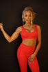 This is a new style bra that we are absolutely loving! The fabric is soft with a slight compression to help hold the girls in place while still giving you a cute little style with a v shape in the from and a scooped open back to show off those muscles baby! There is a thicker shoulder strap and a 2 1/4" thick band around the bust, and removeable pads!